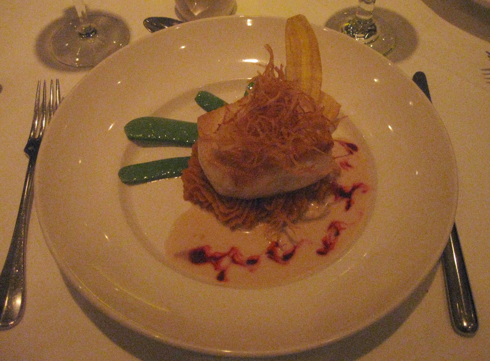 In addition to incredible taste, the dishes were also beautifully presented. I tried to discreetly snap photos of each dish, capturing them the best I could in low lighting without flash. Here's our meal: